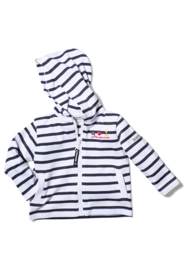 Description: zip-up hooded waistcoat with small embroidery on chest.