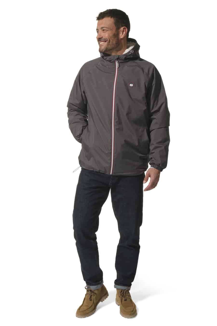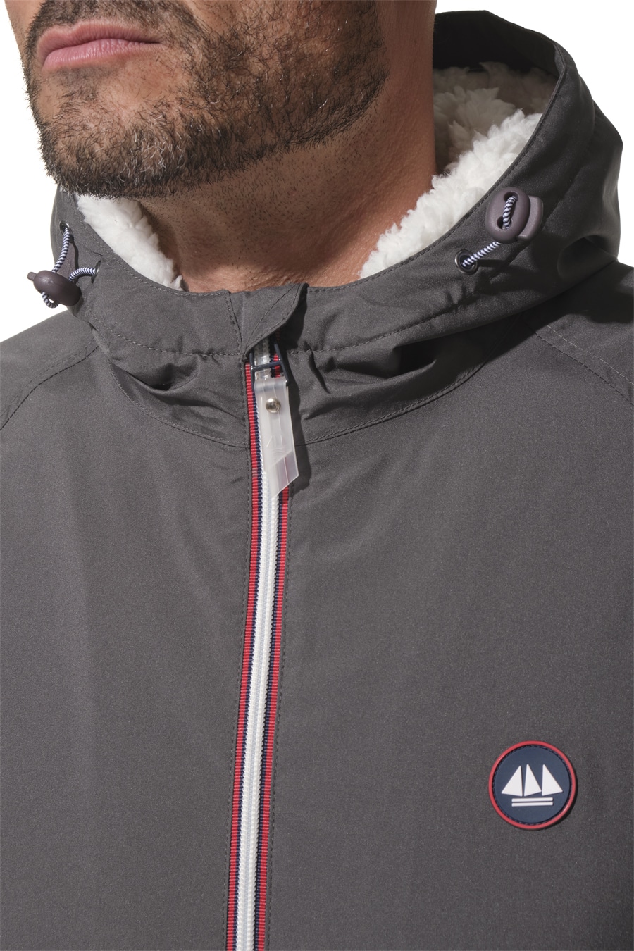 Description: Lined long windbreaker with zip fastening and hood. The seams are taped and the fabric is waterproof and breathable.