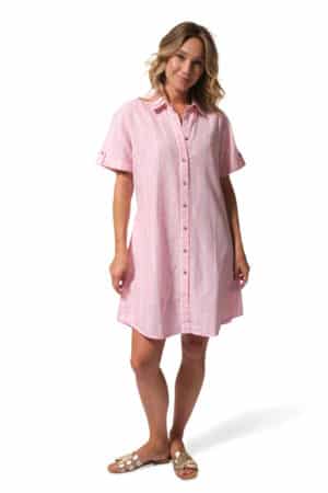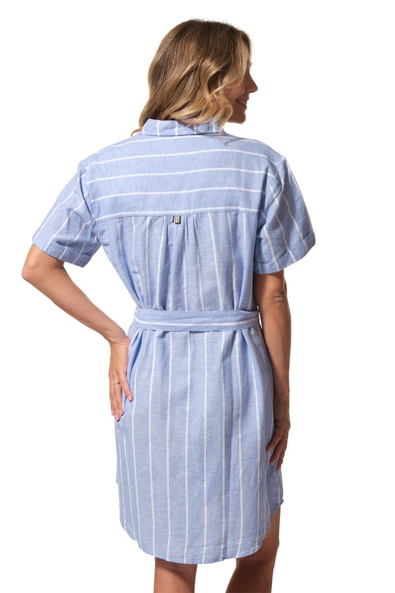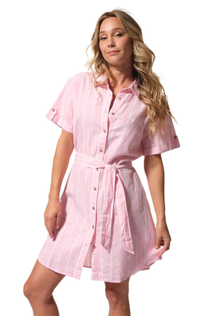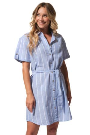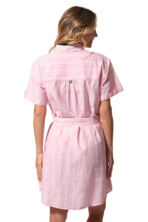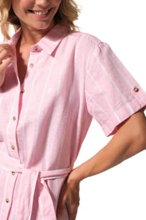 Description : robe chemisier à manches courtes avec une ceinture ton sur ton à la taille.