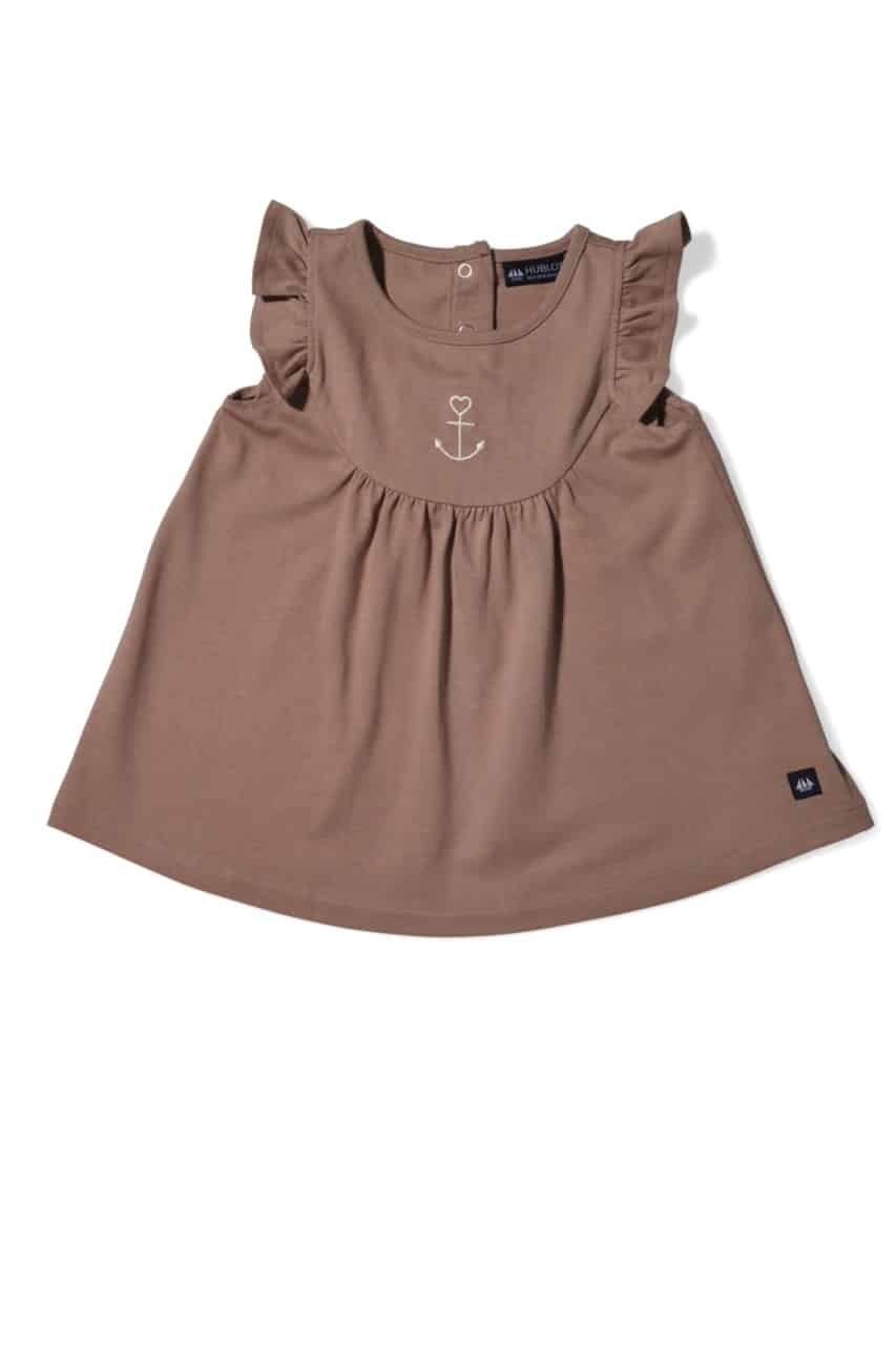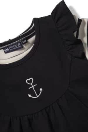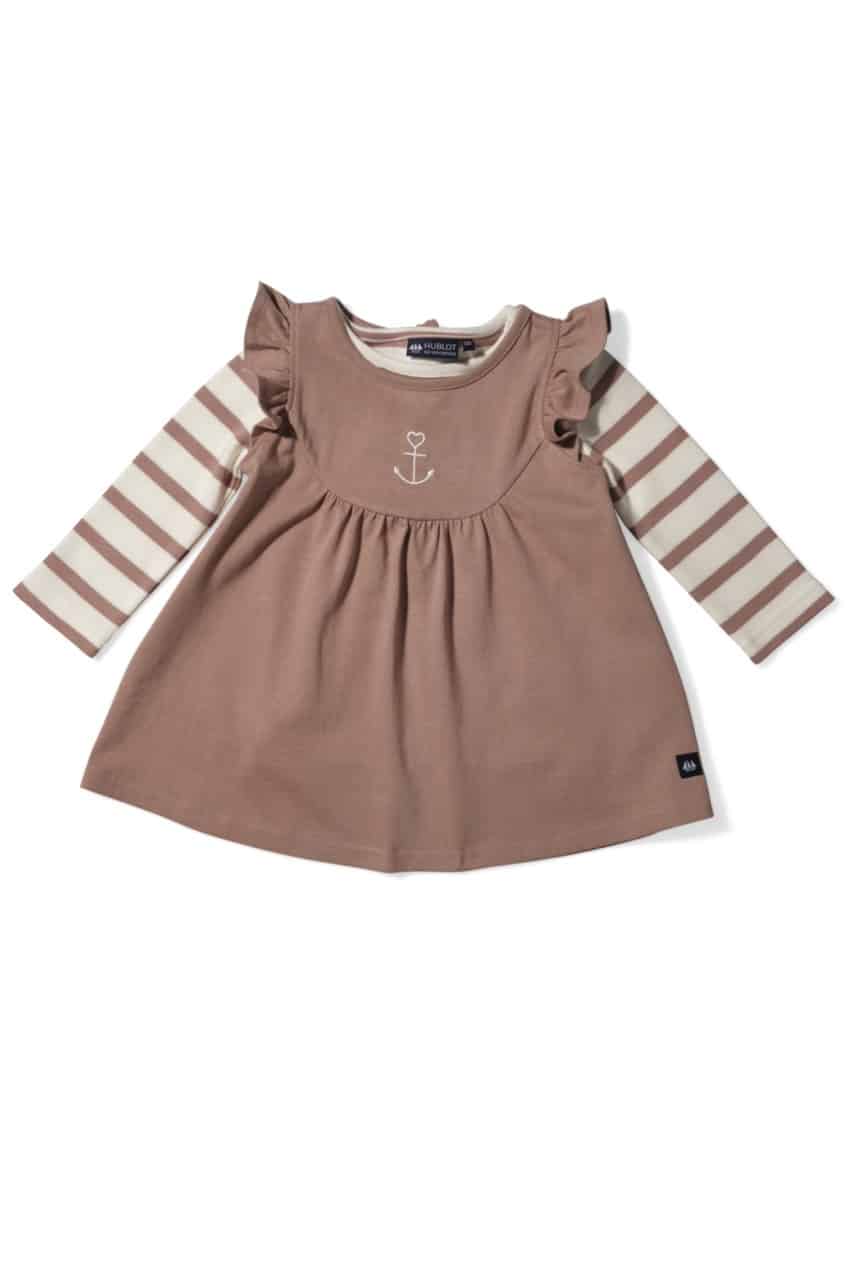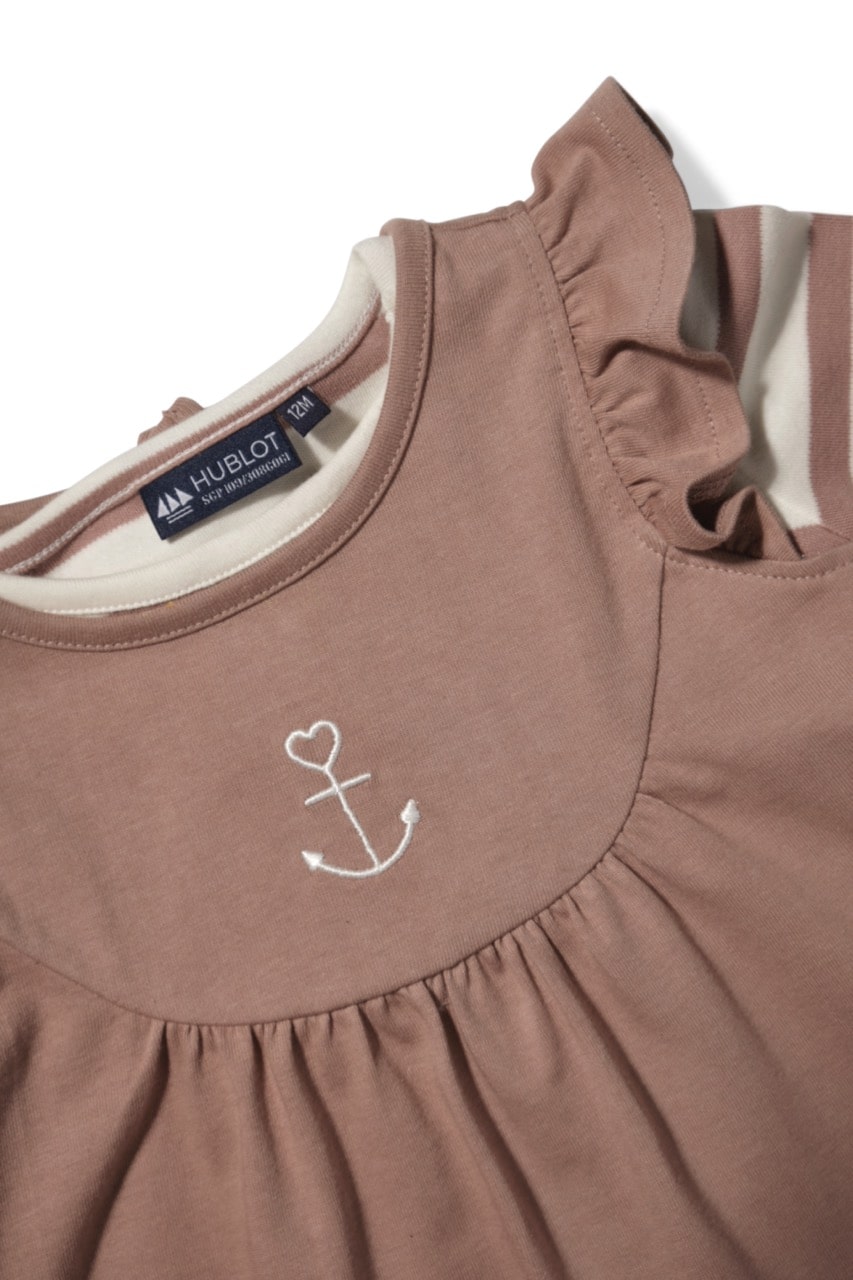 Description: Long-sleeved hat and dress in plain tone-on-tone colour.