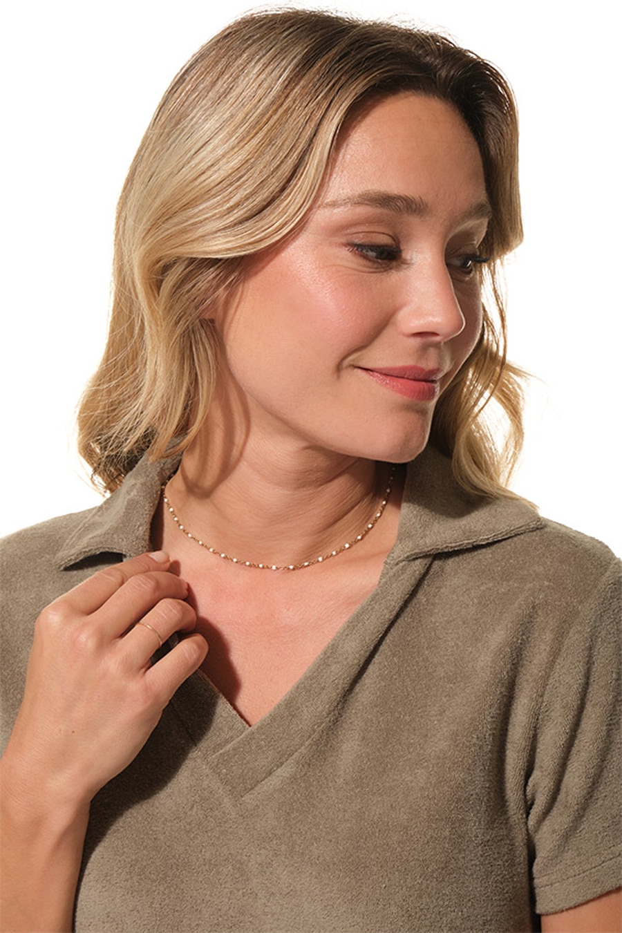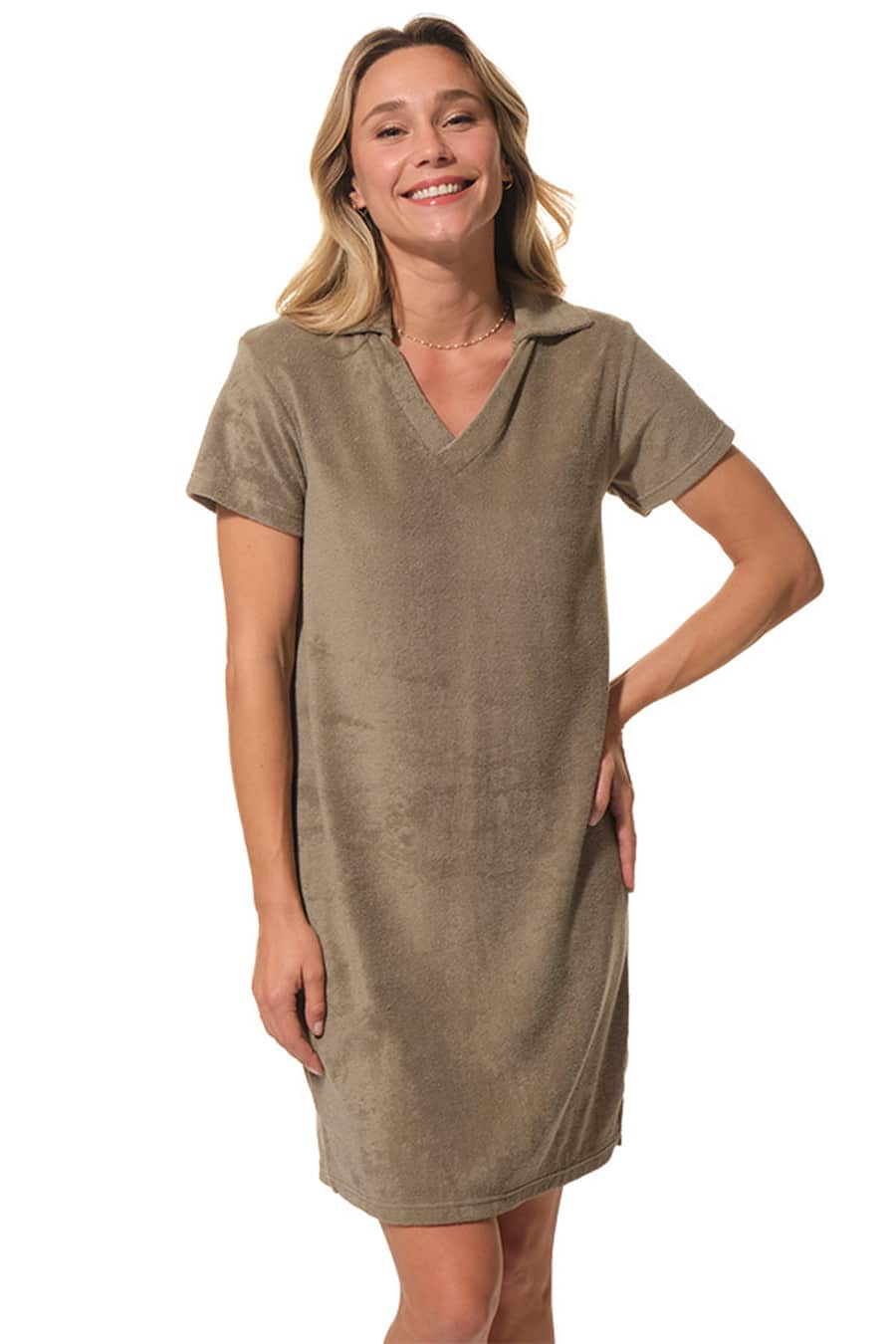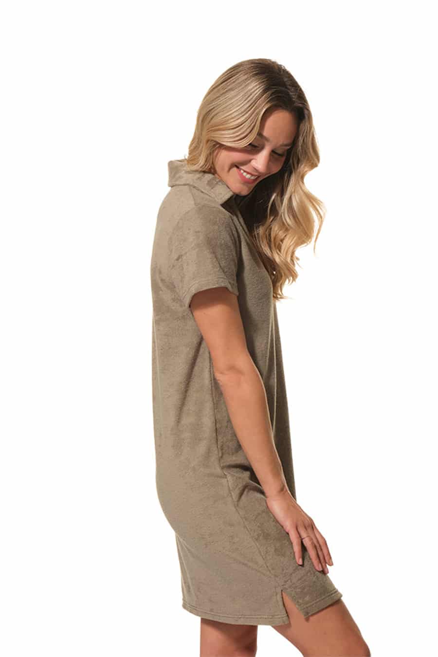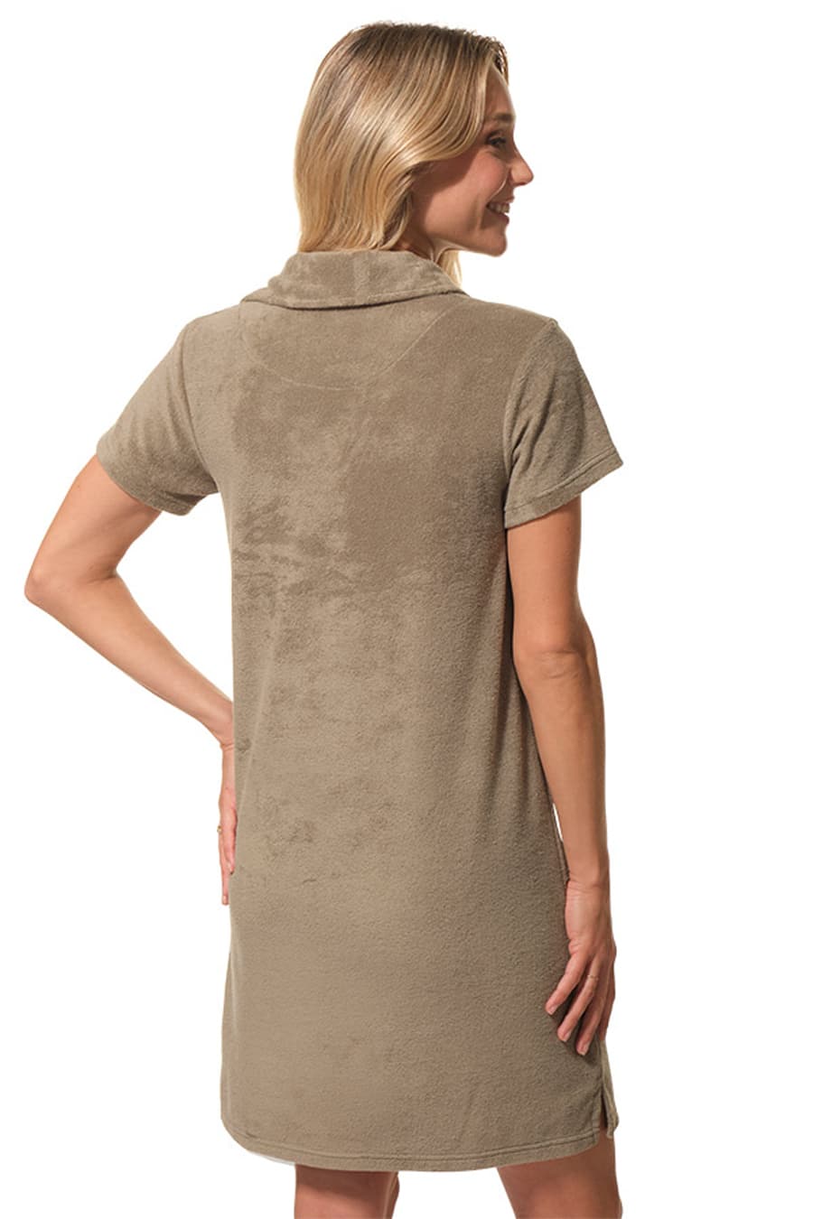 Description: Polo neck dress with short sleeves.
