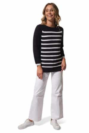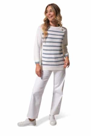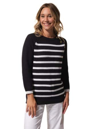 Françoise, pull Hublot mode marine.