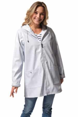 Le ciré Helena métallisé de Hublot Mode Marine séduit par son style classique et sa toile nacrée, parfait pour un look marin moderne. Sa coupe légèrement cintré et sa capuche ajustable avec cordon offrent une protection optimale contre la pluie et le vent. Il se ferme facilement grâce à une fermeture zippée. L’étanchéité parfaite lors de vos sorties en ville ou en bord de mer.