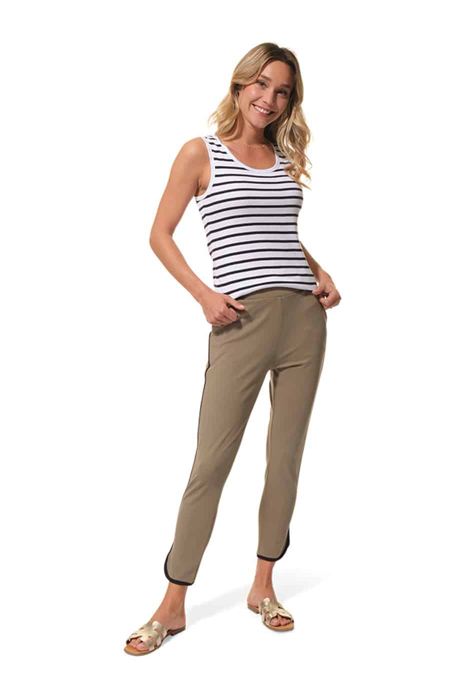 Description: 7/8 trousers with a cigarette cut and fancy details on the sides.