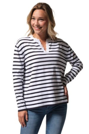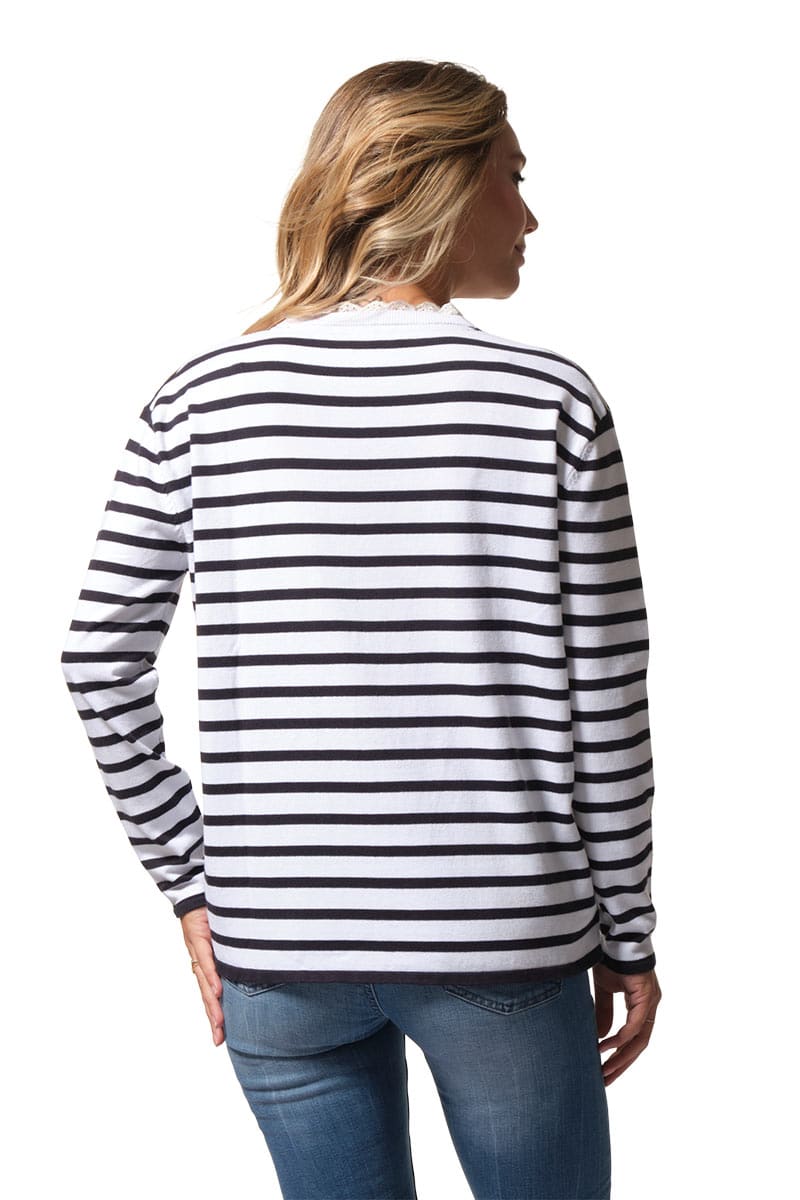Description : pull avec une ouverture col V bordé de dentelle anglaise.