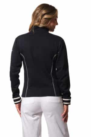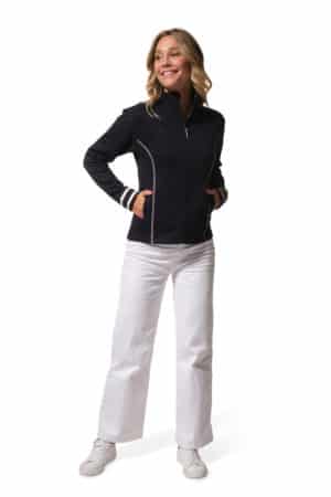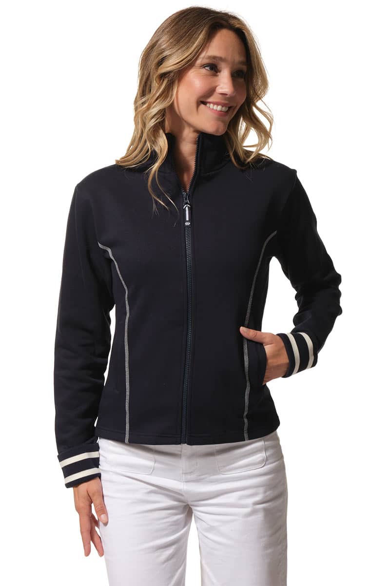 Description: Zip-up cardigan with stand-up collar.