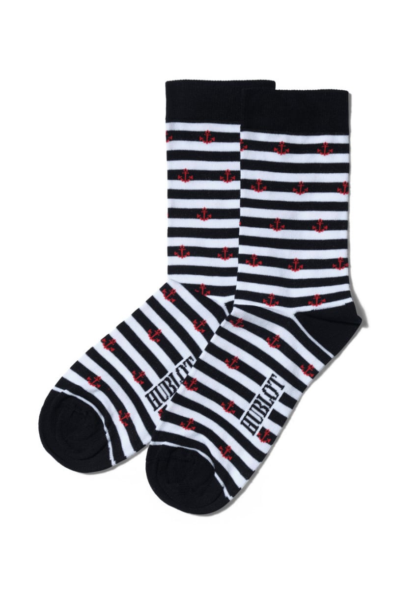 Reference: Mina striped, Hublot navy socks.