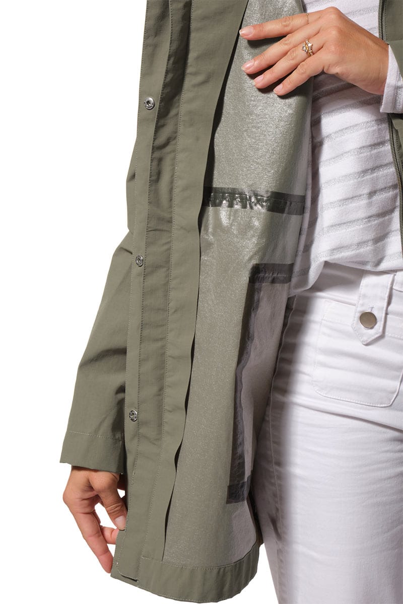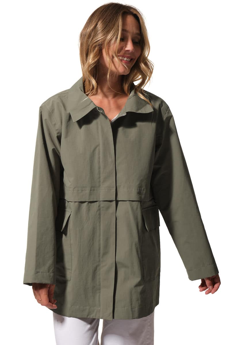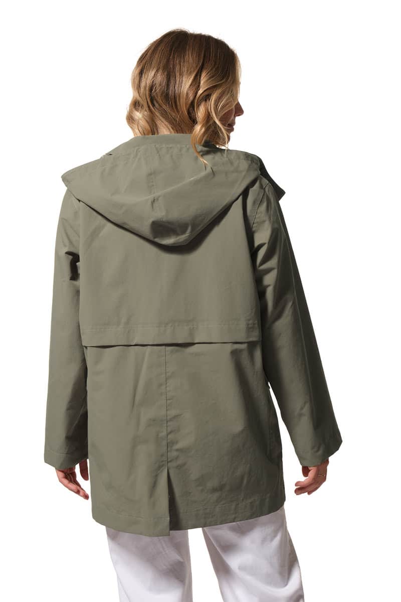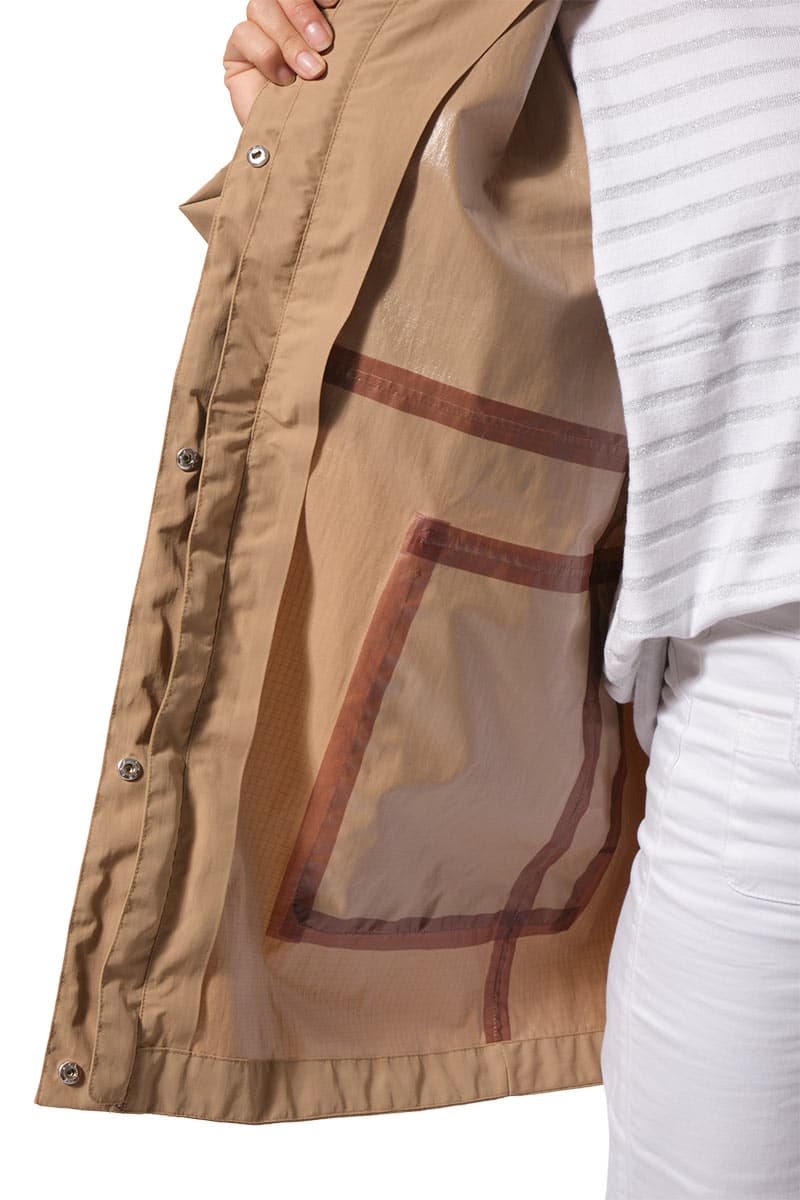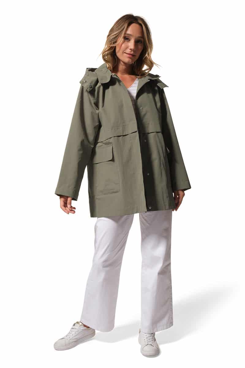 Description : Ciré coupe-vent avec fermeture par zip et une capuche ajustable;