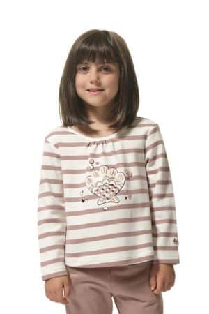 Description: short-sleeved sailboat with a top section made from fabric printed with small anchors.