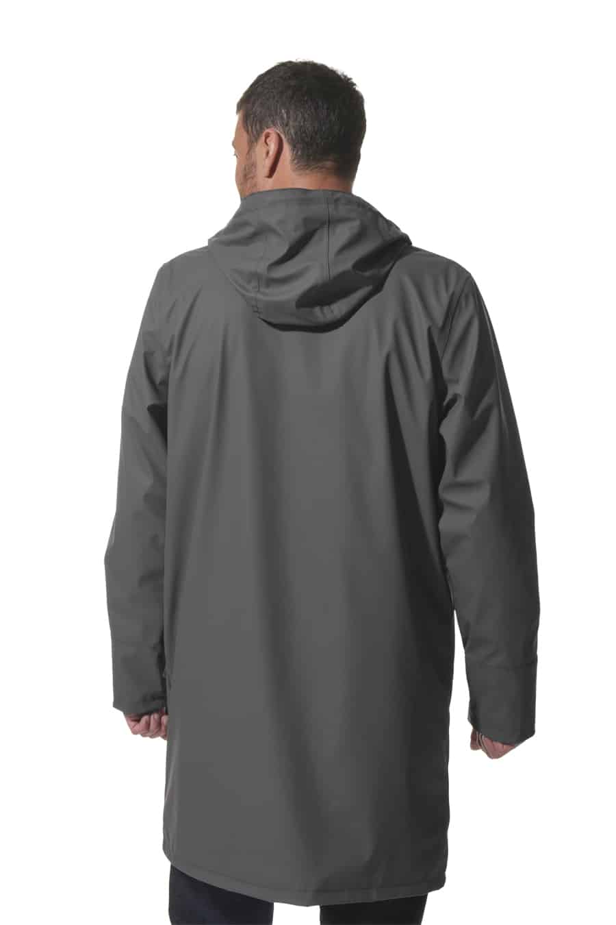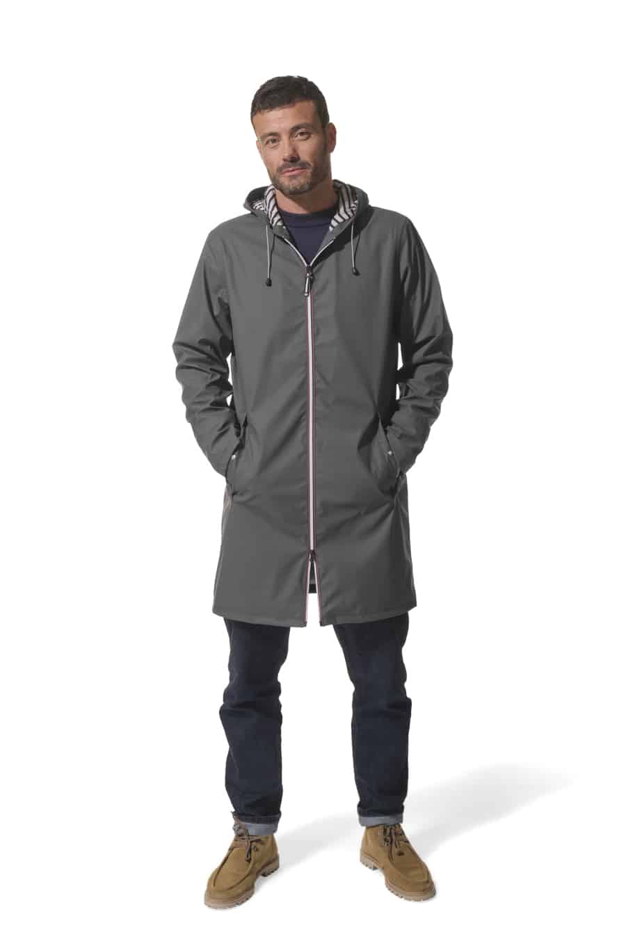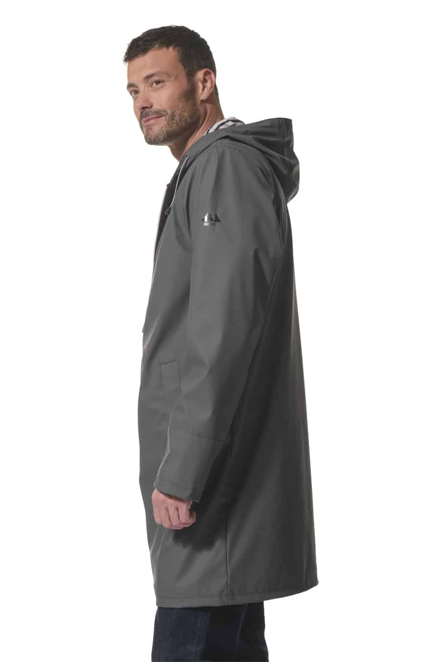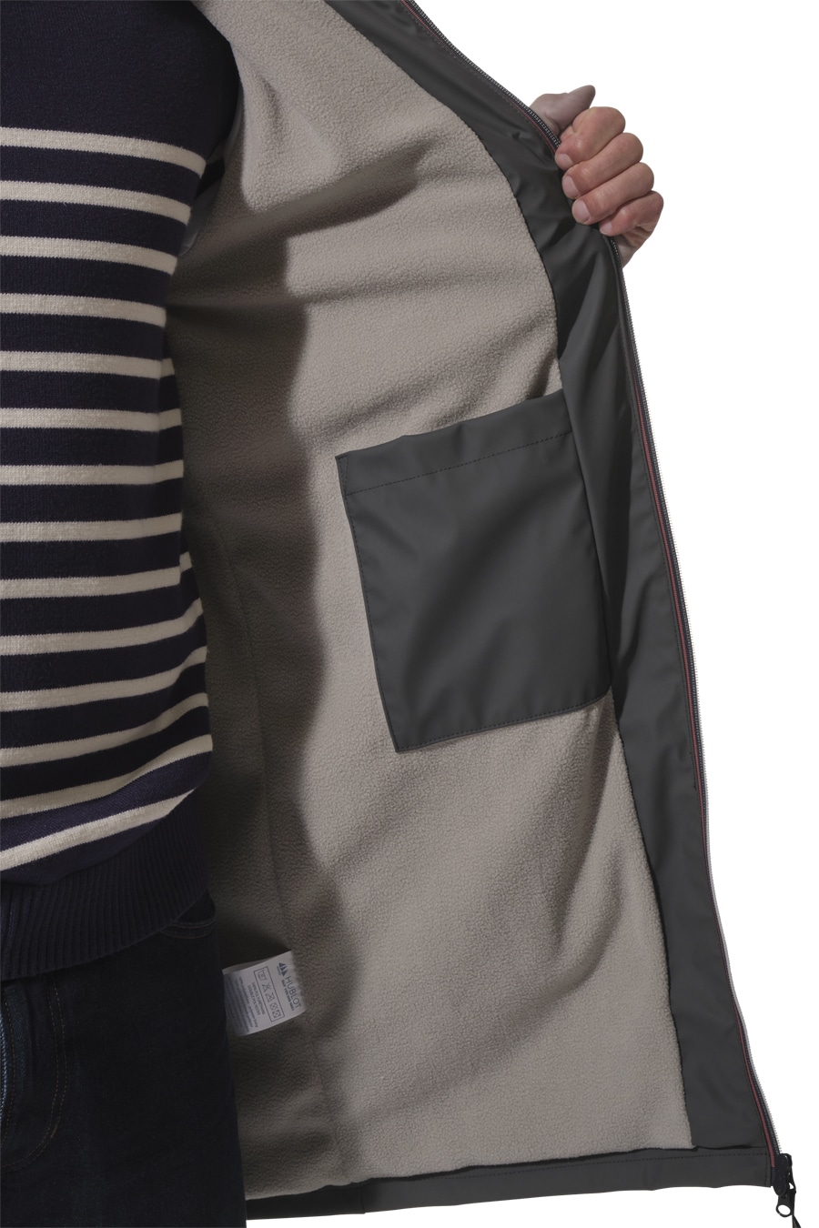 Description: Long hooded raincoat with zip fastening, lined in fleece with non-return sleeves.