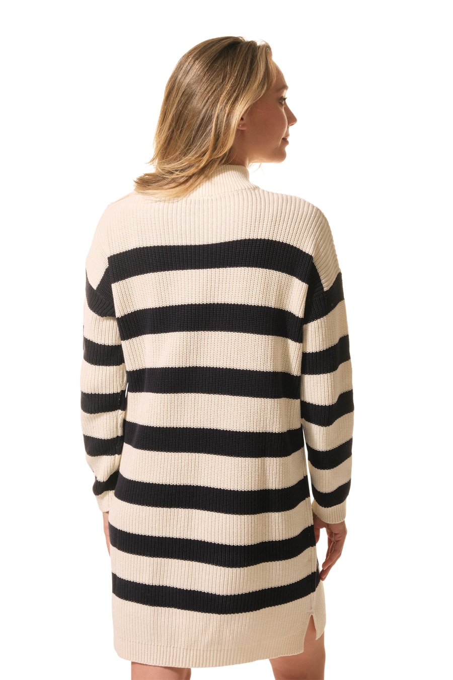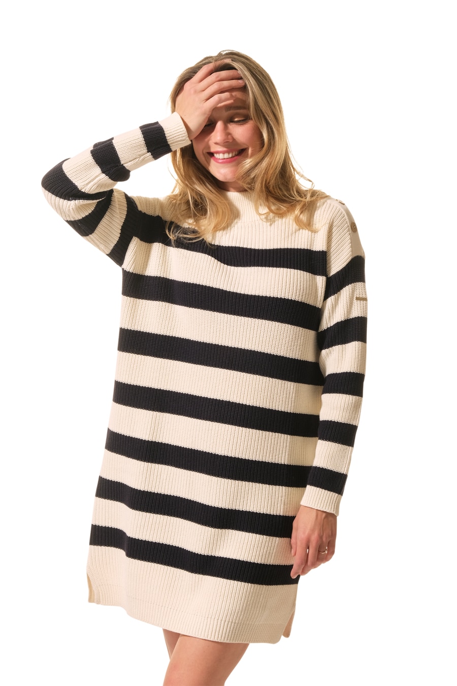 Description : robe pull à col cheminé avec des boutons fantaisies à l’épaule.