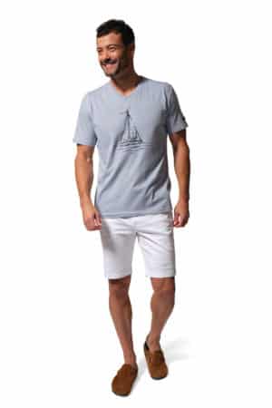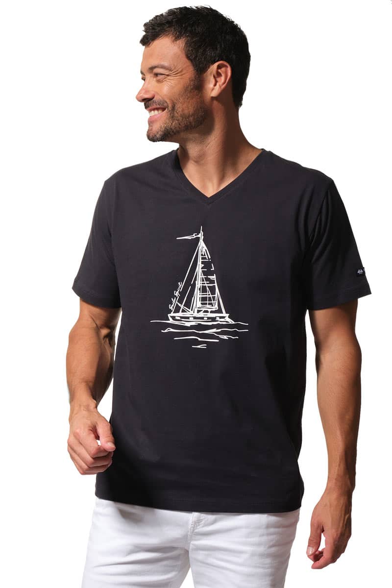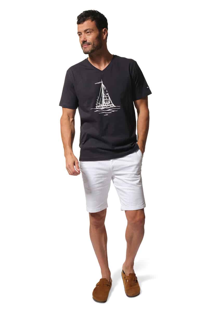 Description : Tee-shirt manches courtes à col V avec une impression sur le buste.