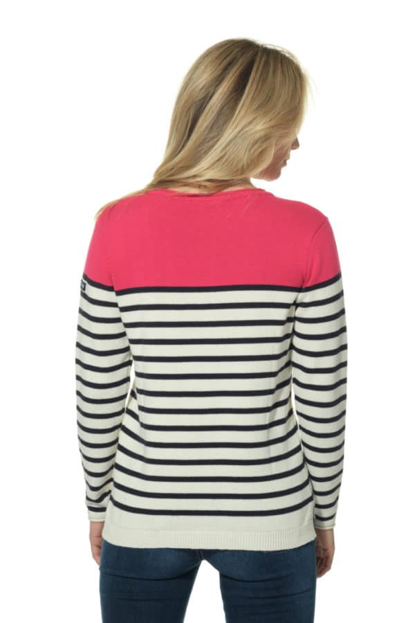 Description : Pull marin avec 3 boutons à l’épaule. Pull marin iconique pour femme, légèrement cintré, le modèle est féminisé.
