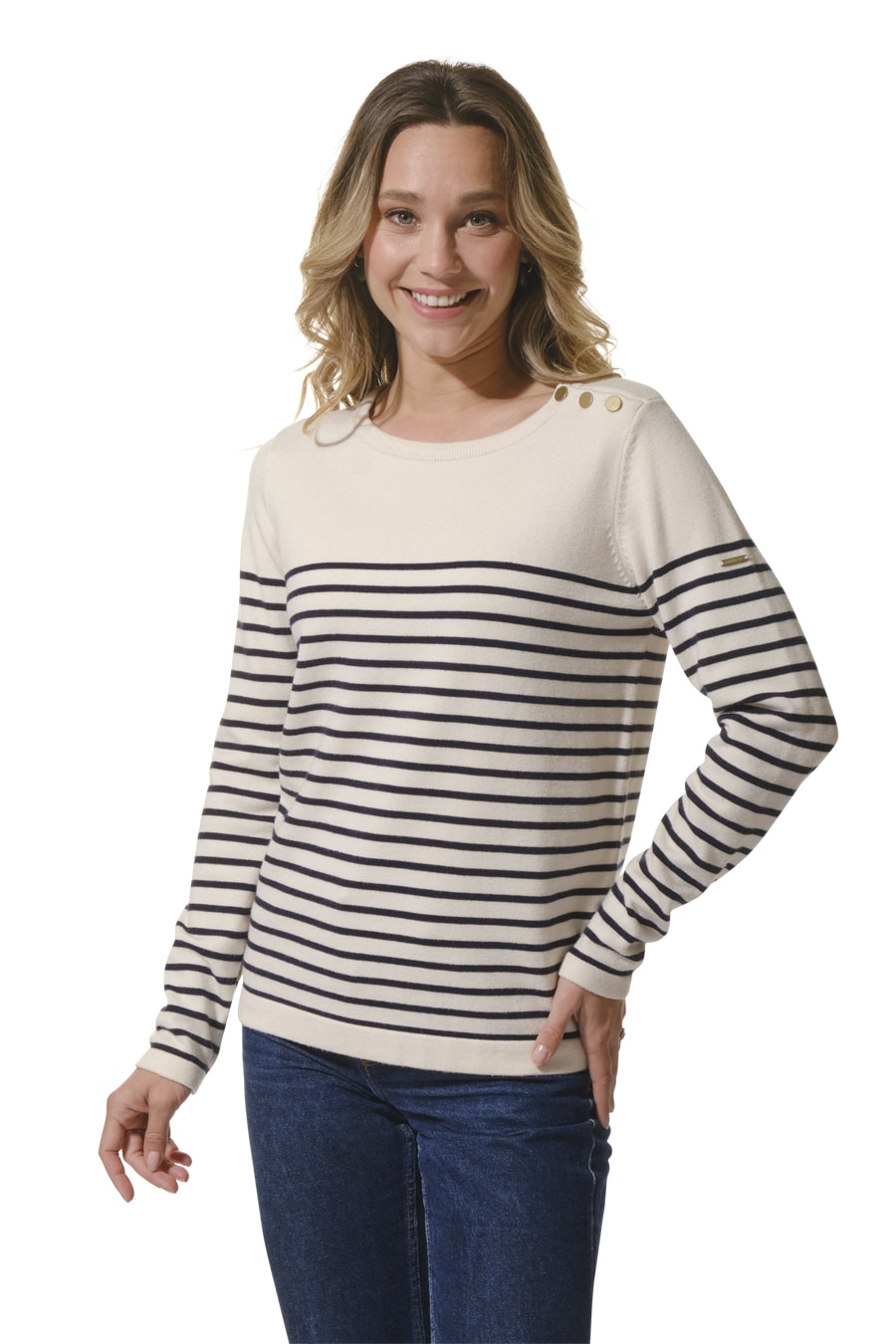 Référence : Gabrielle, pull marin Hublot mode marine.
