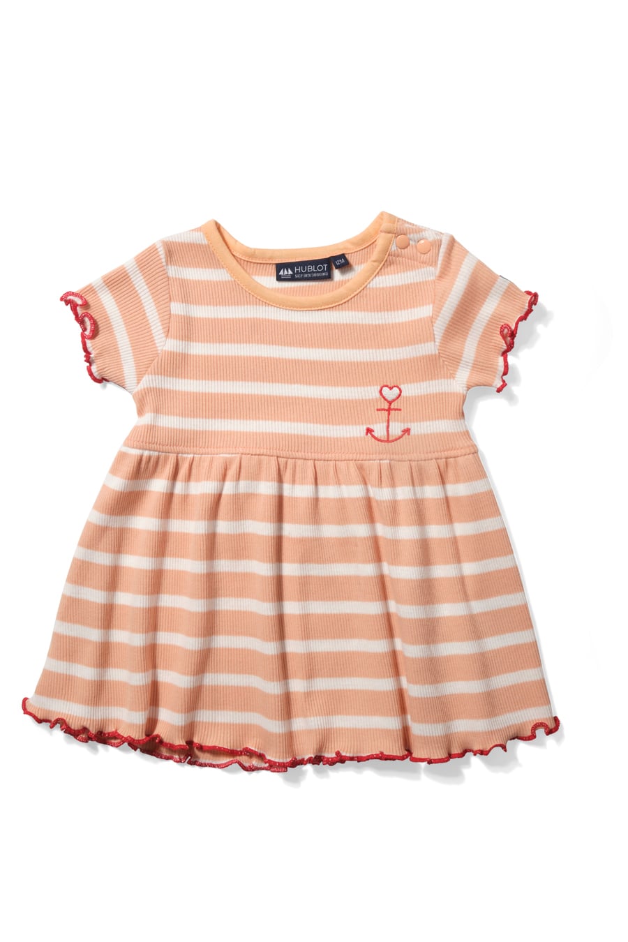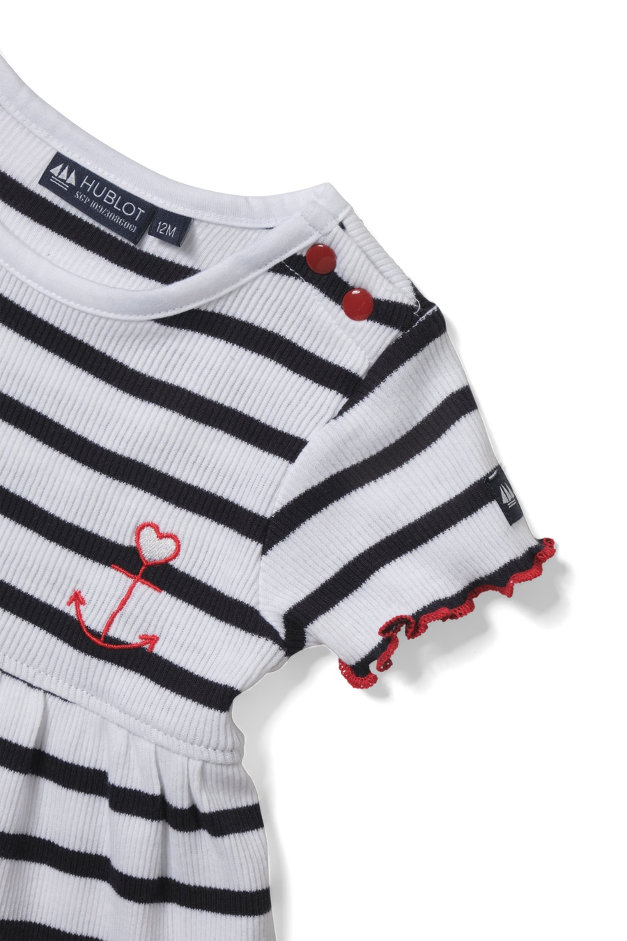 Description : Robe marinière à manches courtes avec une ganse en couleur contrastée.
