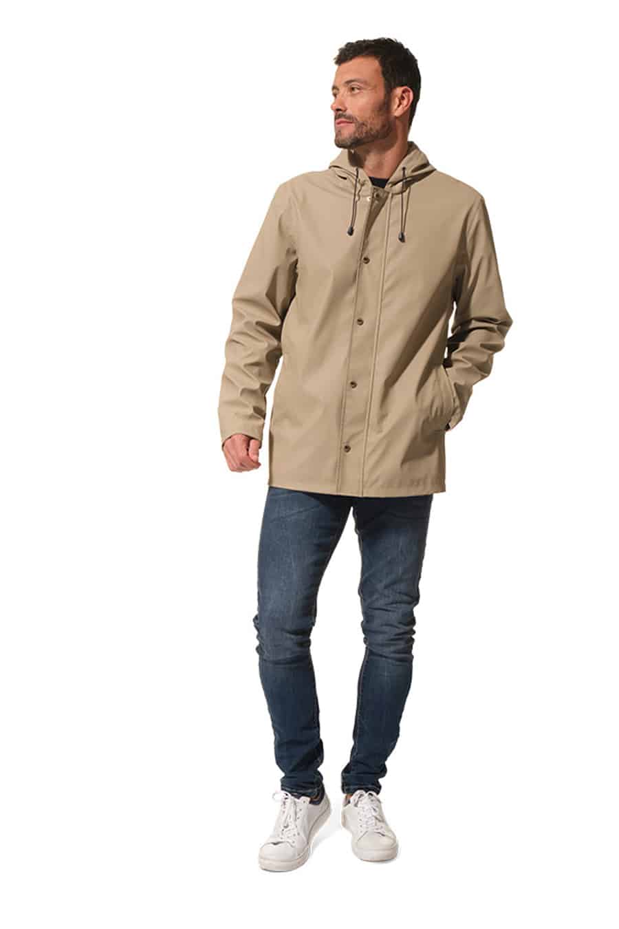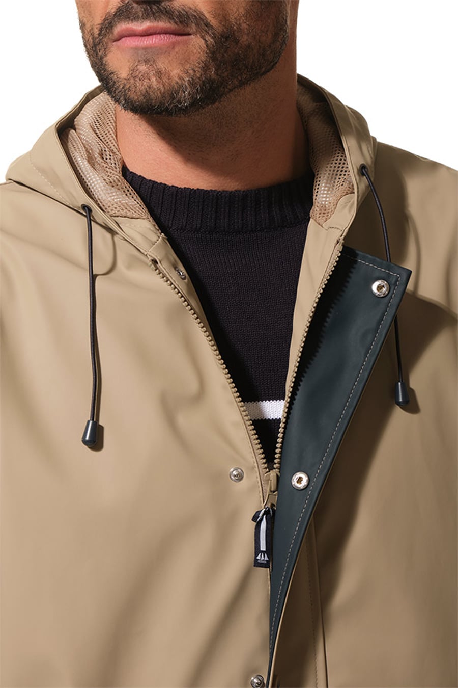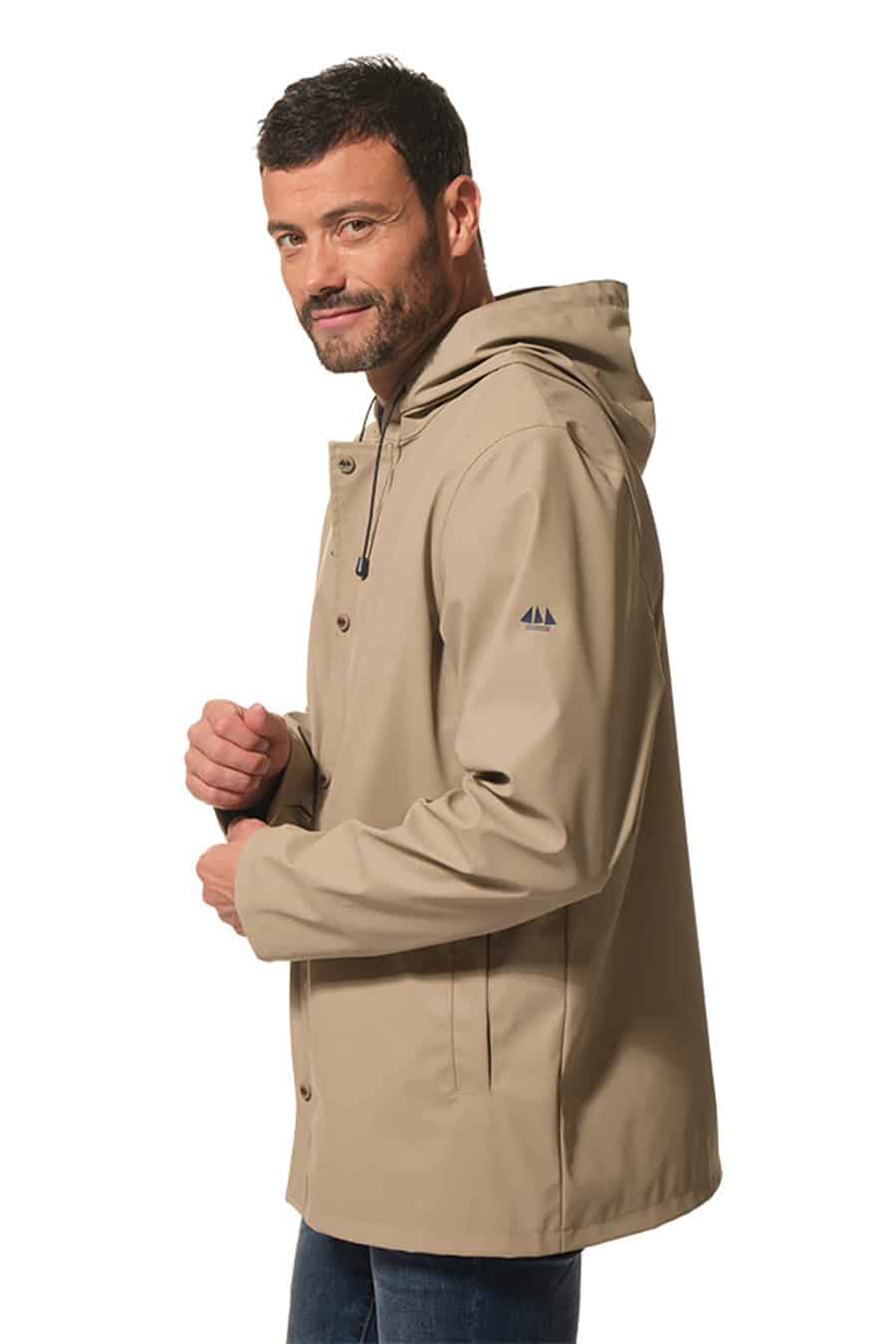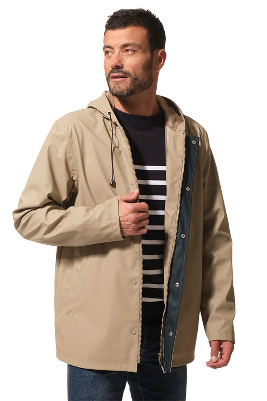Description : Ciré avec capuche et fermeture par zip et par pression.
