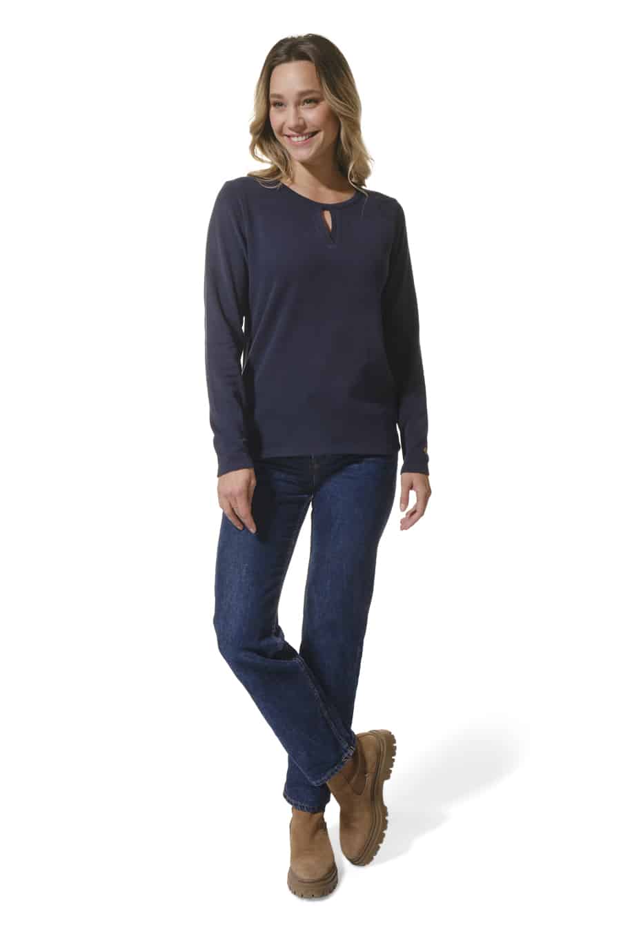 Description : tee-shirt manches longues avec une encolure fantaisie.