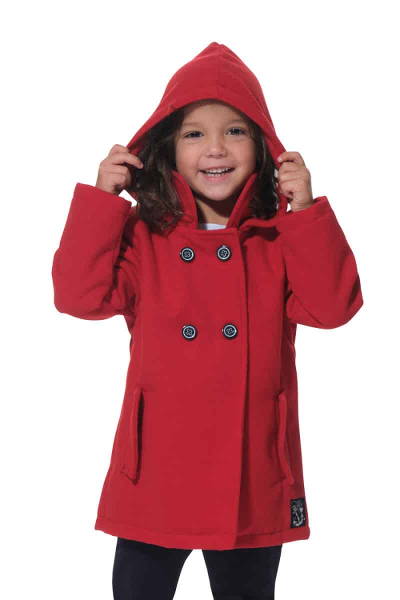 Description : Manteau avec capuche avec une fermetue par zip et par boutons.