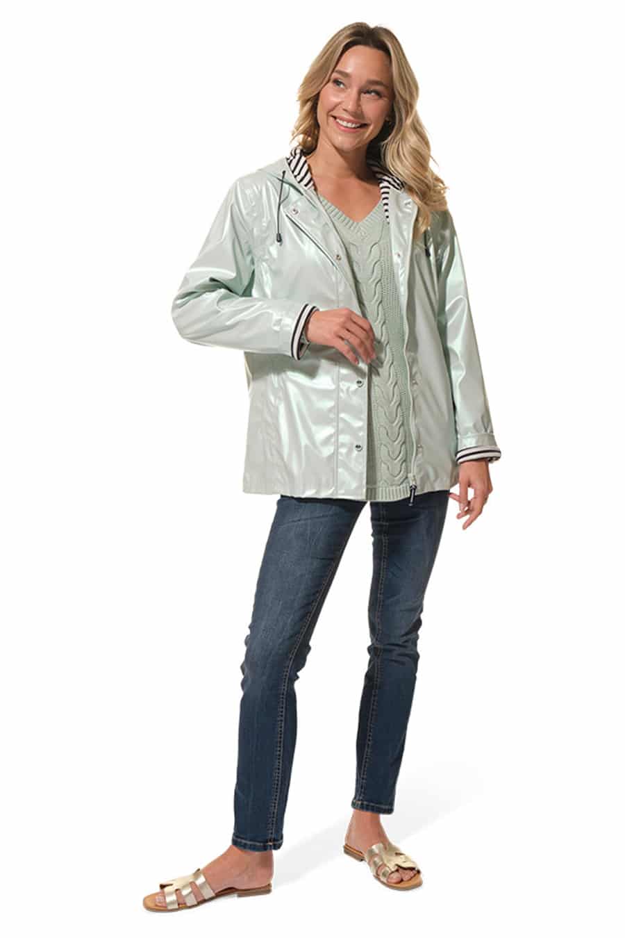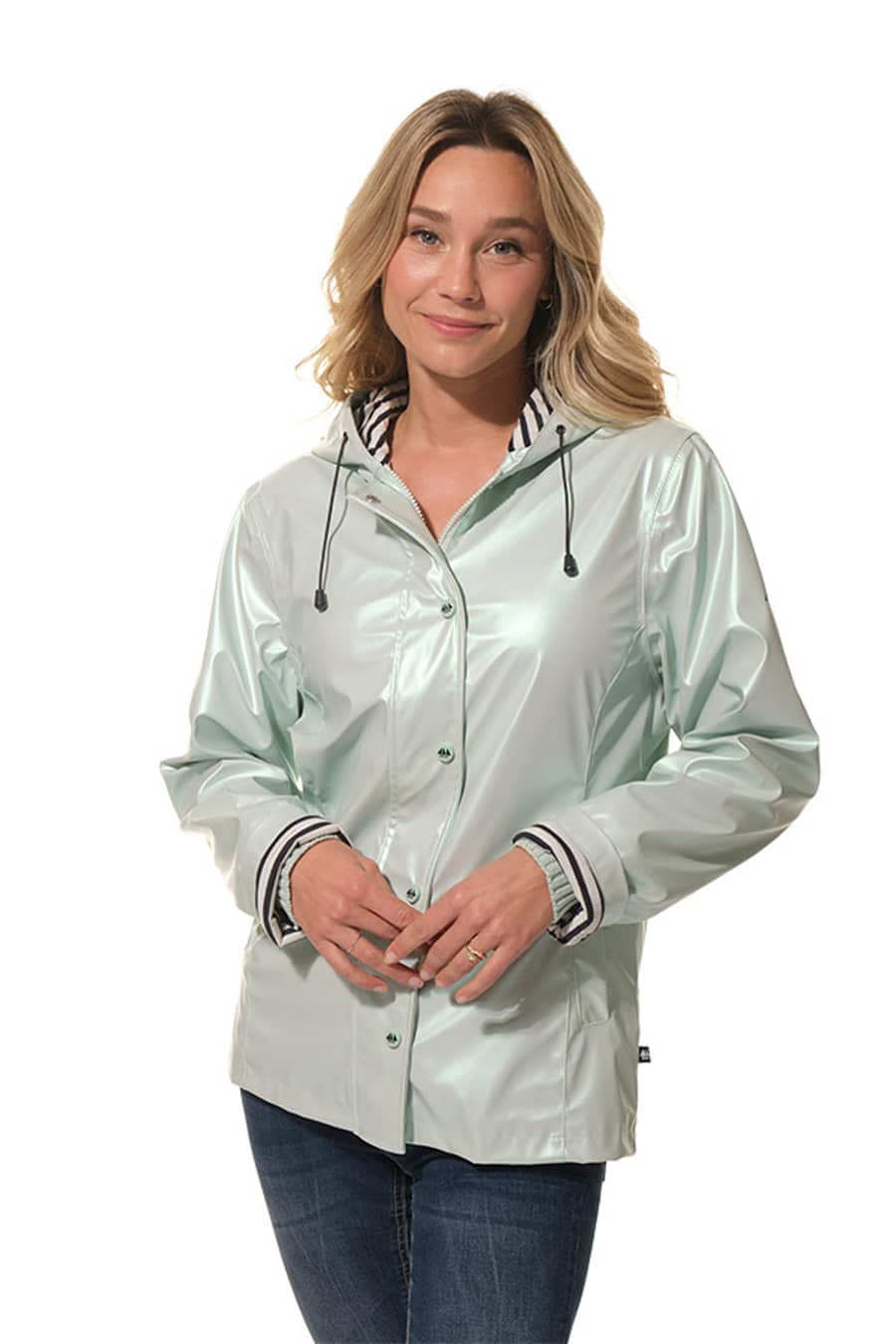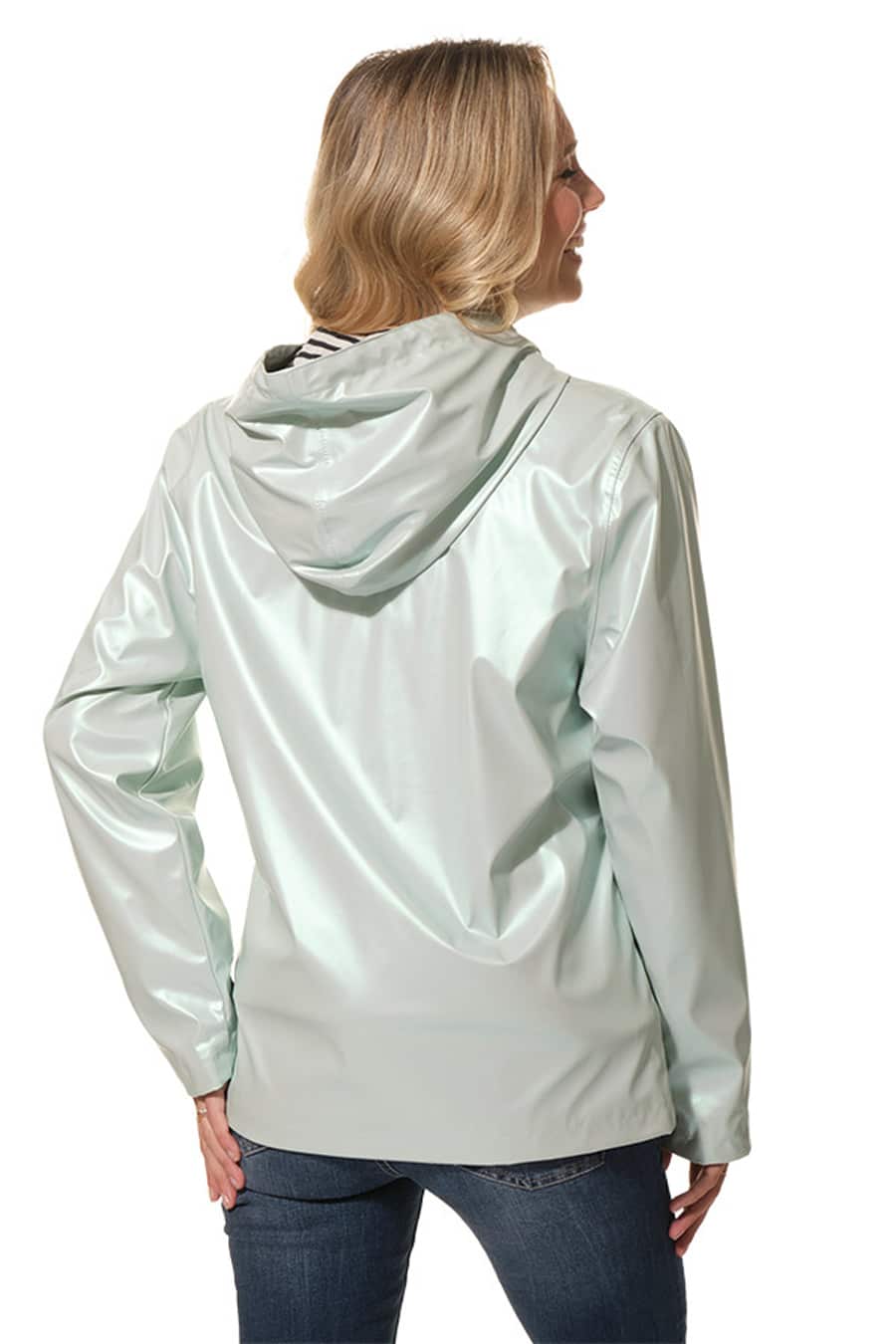 Le ciré Nuance Holographique de Hublot Mode Marine illumine vos journées pluvieuses avec son effet irisé unique et tendance. Sa coupe très cintrée sublime la silhouette tout en assurant une grande liberté de mouvement. La capuche ajustable et la fermeture zippée avec pressions offrent une protection optimale contre la pluie et le vent.