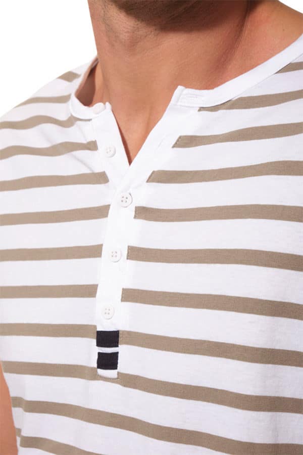 Cette marinière se distingue par ses manches courtes à revers et sa patte boutonnée, pour un esprit à la fois chic et sportswear. Le col tunisien boutonné donne du caractère à ce tee-shirt marin, parfait pour toutes les occasions estivales. Ce modèle s’adapte aussi bien en bord de mer qu’en ville, pour un style casual chic en toute simplicité.