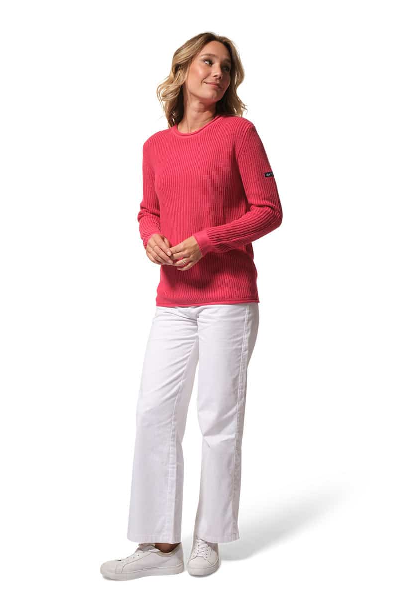 Le col rond met en valeur le port de tête et s’accorde avec tous les styles. Il existe également avec une encolure V avec le modèle Pivoine. Les finitions soignées témoignent du savoir-faire de la marque Hublot Mode Marine. Ce pull est idéal pour les journées fraîches en bord de mer ou en ville.