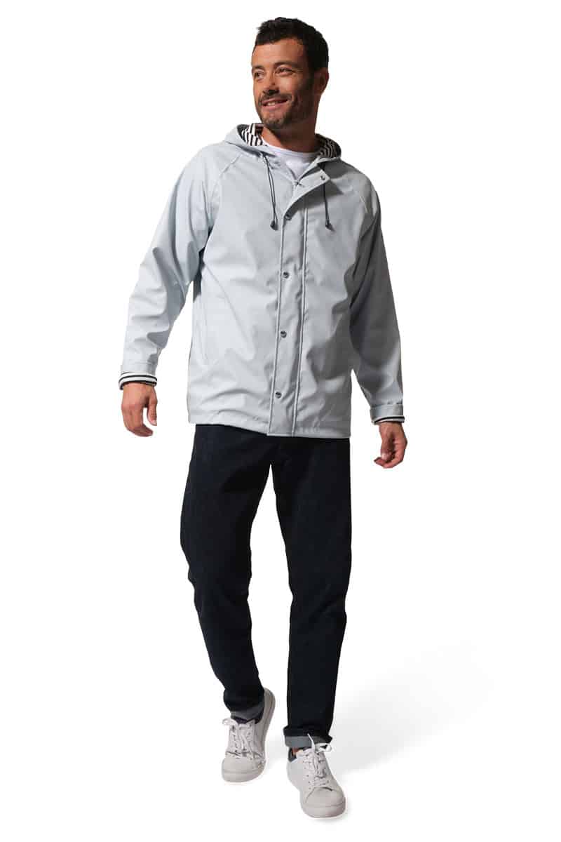 Description : Ciré aux coutures étanches avec capuche et fermeture par zip et par pressions.